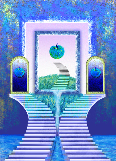 ここは広大に広がる空想の世界、様々なものが時間とは無関係に雄大な世界。すらりと延びた智慧の木はまだその幹は細い。これを大切に育んで、智慧とイマジネーションの大木にしていくかはあなた次第だ。