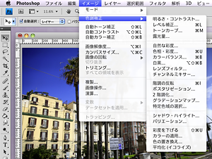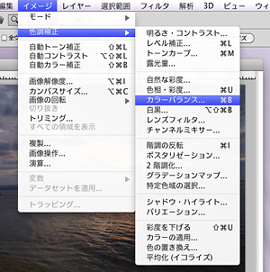 すると左のようなメニューがでてきます。「色調補正」のメニューの中には、こんなにものサブメニューが表示されます。