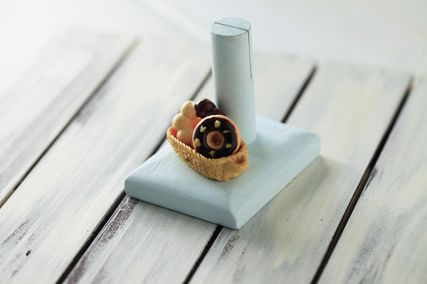 とっても小さな場所を取らないフォトスタンド、メモスタンドです。スタンドには、スイーツデコくぉあしらった、とてもかわいらしいデザインに仕上がっています。リビングに、電話の横に、またちょっとした大きさのレシピだったら、挟んでキッチンの棚の上においたら、見やすいかもしれません。