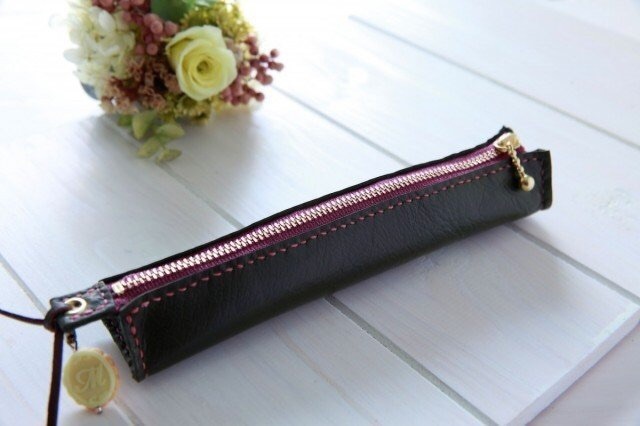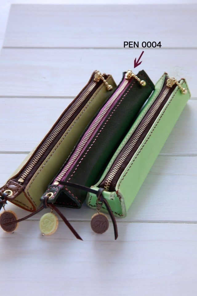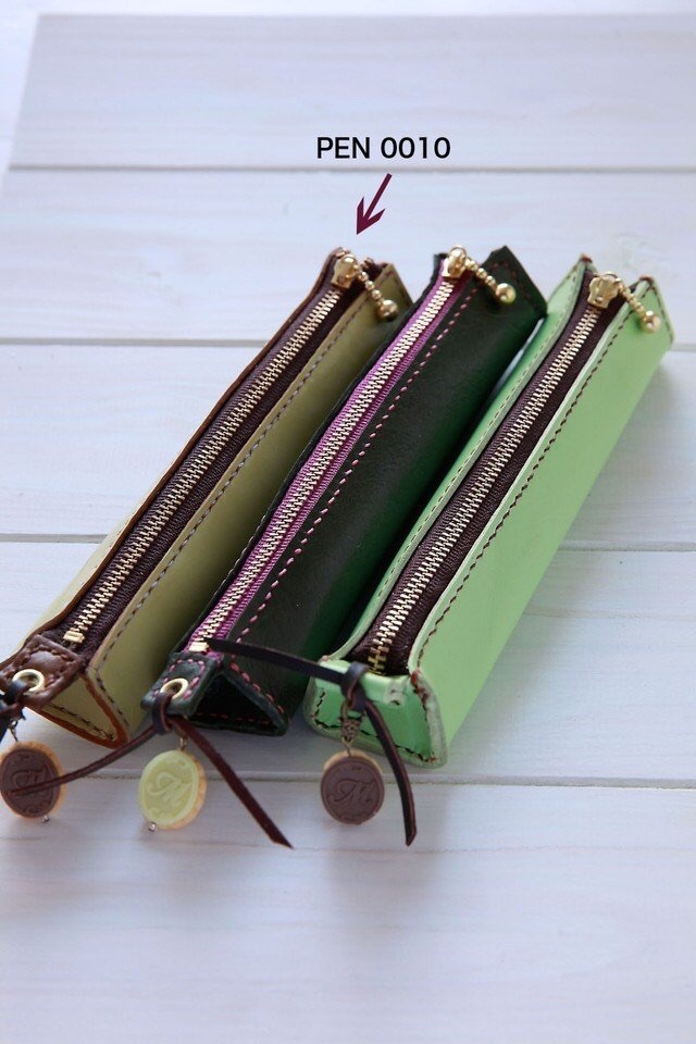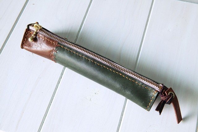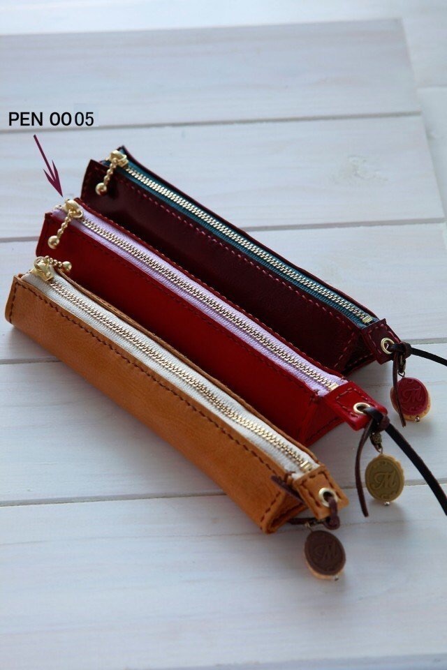 天然牛革100%のオールハンドメイドの手縫いペンケース