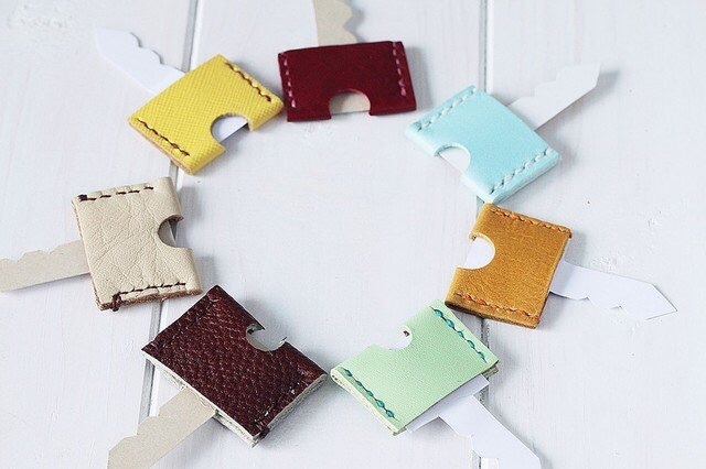 お手持ちの鍵をカラフルな本革で包んでみませんか。