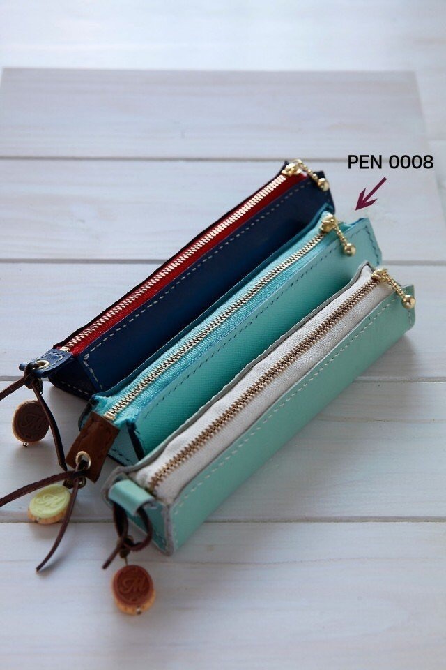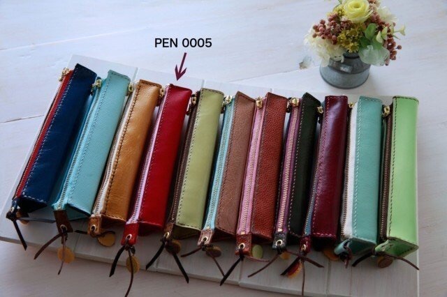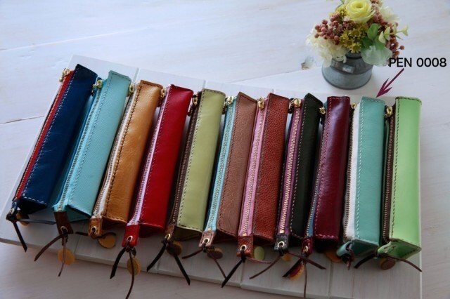 天然牛革100%のオールハンドメイドの手縫いペンケース