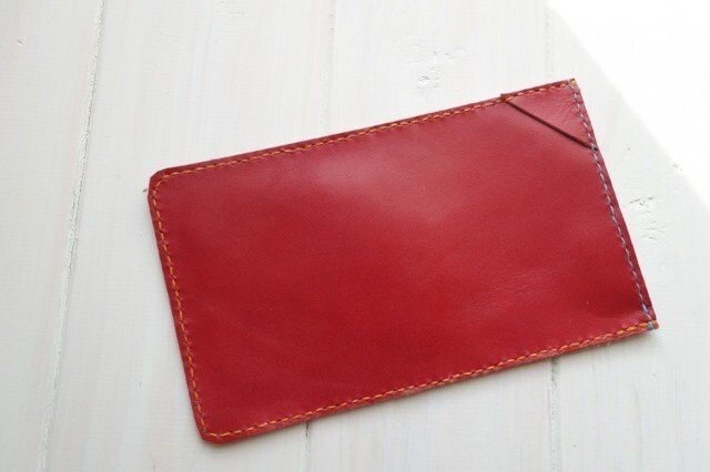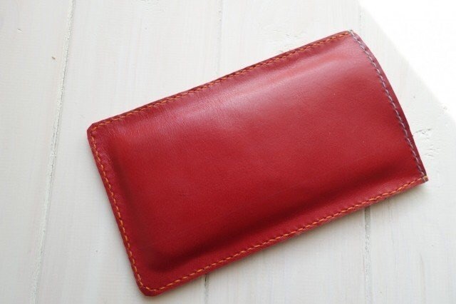 素材は、とても柔らかな春らしい赤色の牛革を使用。手触りは柔らかさと、適度な光沢感があって、使っていても気持ちがいい一品です。