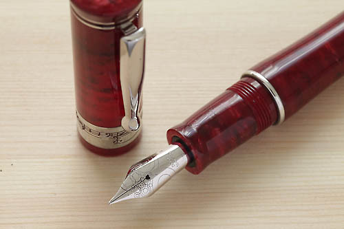 彼の遺作となる中国を舞台にした「トゥーランドット」が有名。オペラの初心者にも親しみやすい旋律は世界中にイタリア・オペラを広めました。楽譜をここまで大胆にデザインした万年筆は他にないでしょう。深みがあるが明るい赤の胴軸は本当に美しく、見た目以上に軽く書きやすい事に驚きます。