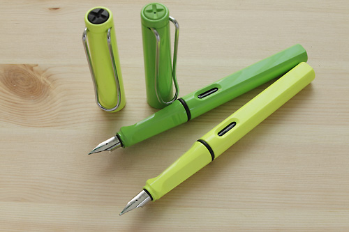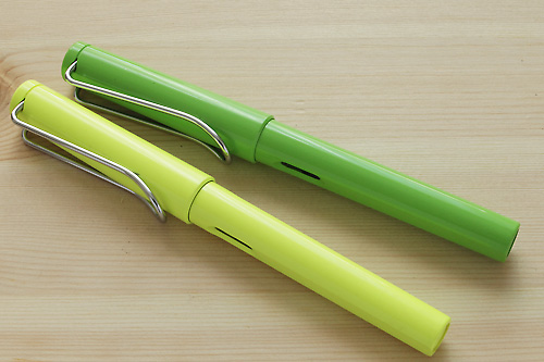 ドイツのメーカーLAMMY社が作り出す、万年筆は、サファリやアルミボディのアルスターなどがある。これらは毎年その年の限定カラーとして発売されるものがある。こちらの蛍光色のグリーン、イエローもその1つだ。2014年はビビットなピンクが発売されている。