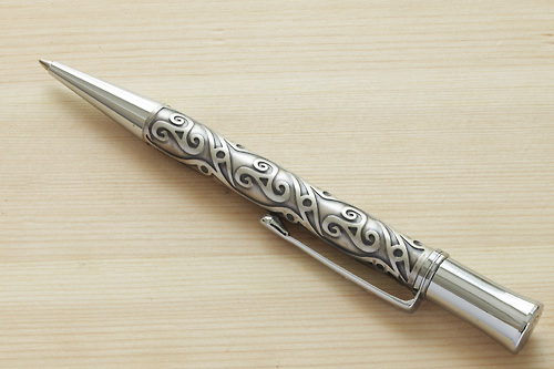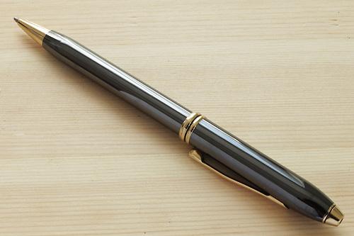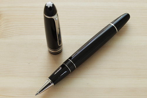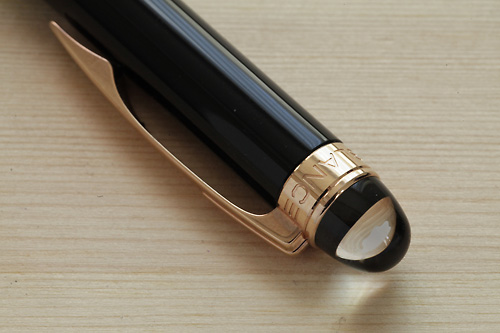 このローラーボールは、たしか海外の免税店で購入したものだ。日本で同様なものを探そうとしたが、完全に同じものは見つける事ができなかった。私の中では非常に貴重な1本。かなりの重さがあり、ローラーボールもスラスラと走らせる事ができる。プラチナラインは黒のレジンの豪華さを際糺せる役目を負っているようにも思える。