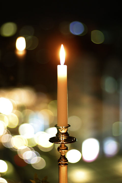 ロウソクの光は人のこころを癒してくれる。静かにロウソクを眺め、物思いに耽る。そんな時間は実は贅沢なのだ。だからそんな時間を持つ事ができたら、決して無駄にしてはならない。奥にきらきらと光る街のあかりがより一層、こころを和ませてくれる。