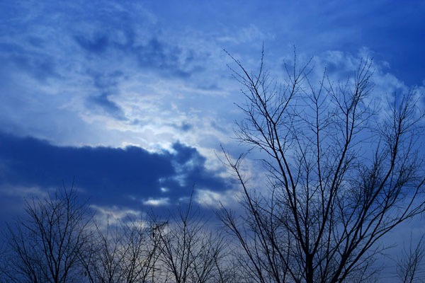 寒々しい空、冷たく漂う蒼白い雲、冬を耐え抜く木々の枝がほそくほそく空に向かって伸びている。まだまだ春は遠からじ、しかしながら、決して淋しい光景ではないように感じる。それは春を待つ生命力を感じるからだ。
