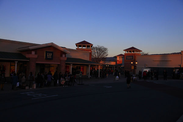 きっと有名なアウトレットモールなので、訪れた方も多いことでしょう。富士山からのさわやかな風が吹きおろし、濃いオレンジ色に包まれて、あたり一帯が一体になっていく。なんとも甘美な瞬間。やがて日が暮れていく。
