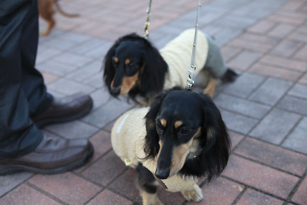 どうもアウトレットモールでは、犬の散歩をしている人を多数みかける。広大な敷地であるため、ちょうどよい散歩コースなのだろうか。それにしてもかわいい。まるで双子の犬のように見える。思わず頭を撫でたくなる。