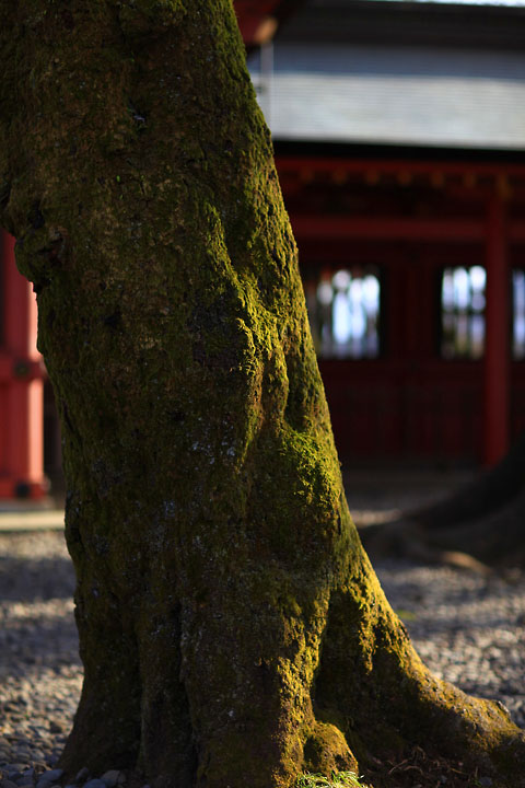 神社の境内の中に古木があった。苔むし、もう何十年、いやもしかしたら何百年も前から、神社を見守り続けて来た神木かもしれない。苔は夕陽に淡く映えていた。