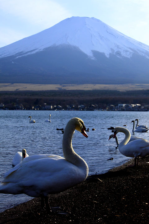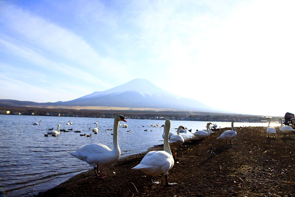 富士山を中心に雲が放射状に伸びていました。まるで富士山から雲が湧き出て伸びているかのように、雲が行きているかのように見えた。そんな光景など目に入っていない様子で、水鳥達の日常は過ぎていきます。