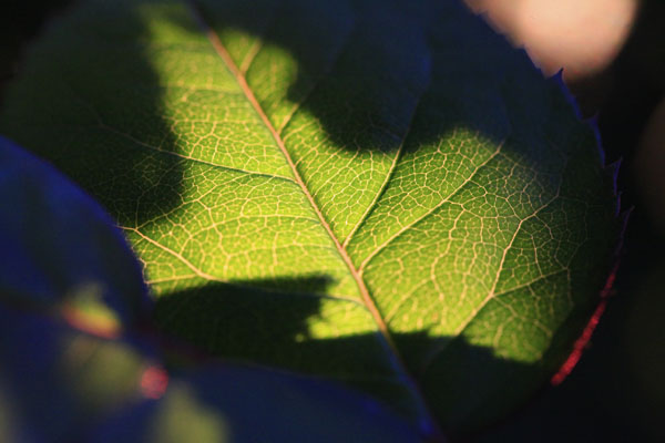 光と影、その2つのまったく逆の力をもつものが織りなす世界はとてつもなく美しく印象的だ。たかだか一枚の葉っぱの上で繰り広げられる陰影の世界。植物が形作る芸術、葉脈の美しさは、その一見ランダムに描かれた文様のようであって、神が意図を持ってデザインした最高芸術だ。
