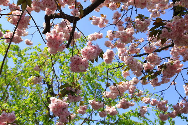 遥か昔1000年も前から宮中の歌に謳われるほど、昔から親しまれて来た八重桜。現代になっても、こうして家族のひとときに花を添えています。