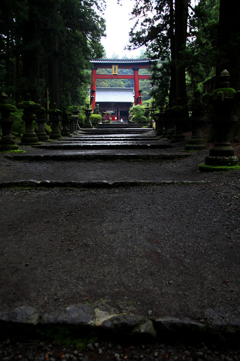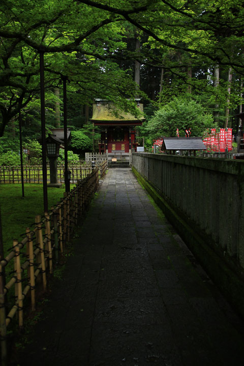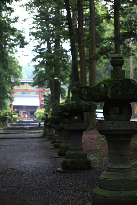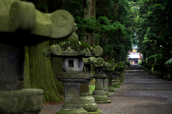 苔むした灯籠と、苔むした杉並木の太い幹が、神域への参道をより一層、神秘的なものにしていた。なだらかな参道は、神聖さと厳粛さの中にも、どことなく人々を温かく優しく迎え入れるような雰囲気を併せ持つ。夜に灯籠に火が灯ったら、きっともっと幻想的な世界が広がっているのだろう。夜のお祭りの日に訪れてみたいものだ。