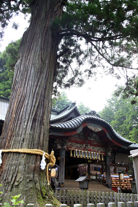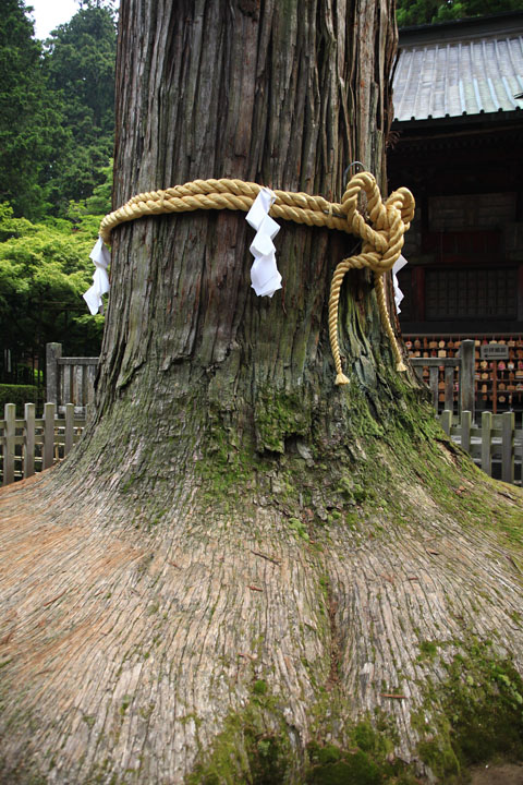神木である大杉の根のあまりの巨大さに驚かされる。今でもしっかりと大地に根を下ろし、赤ちゃんからお年寄りまで、そしてその人々の人生の初めから終わりまで、しっかりと見届けてきた大杉は、いろいろな人たちの人生の節目節目のお祝い事で写真に収まったことだろう。