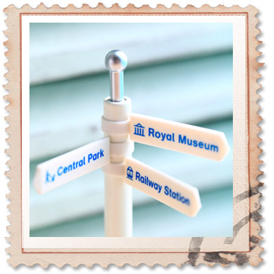 海外の道路標識をモチーフにした白いオブジェです。